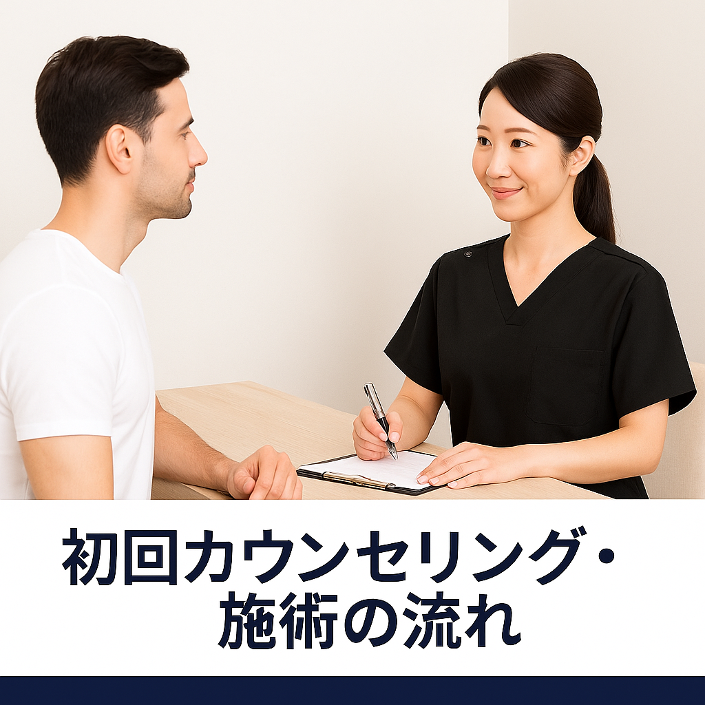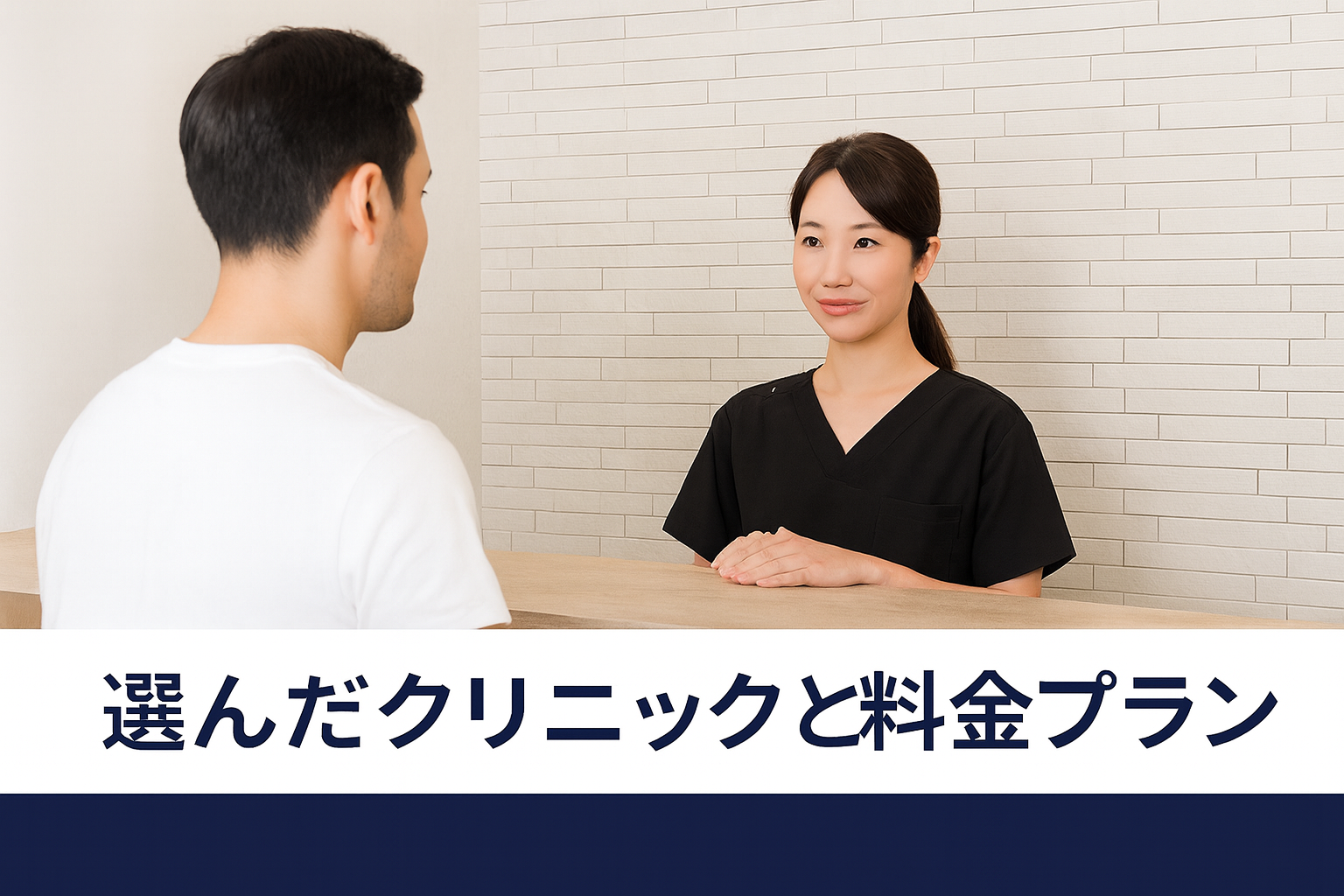 ネットで予約をして、まずは無料カウンセリングへ。院内はシンプルで清潔感があり、スタッフはほとんど女性だったので最初は少し緊張しました。ただ、待合室は男性の利用者ばかりで思った以上に賑わっており、「メンズ脱毛はもう当たり前なんだな」と安心できました。 カウンセリングは個室で行われ、看護師さんから料金や施術の流れについて丁寧に説明を受けます。その後、女性医師による簡単な診察をうけ問題なく施術できると判断され、契約の案内へと進みました。 僕はホームページで「両脇5回 15,000円」というプランを見て来院しましたが、実際にはより効果が高いとされる通常プラン(18,000円)もあるとのこと。追加費用は3,000円でしたが、脱毛は“効果がしっかり出るかどうか”が一番大事だと思ったので、その場で通常プランを選びました。少しの差額で効果が高い方を選べるなら納得ですし、安心感も増しましたね。 この日は契約のみで、施術は後日予約という流れに。僕は「契約してそのまま施術」のつもりで準備していたので少し拍子抜けでしたが、初回から施術も希望する人は、ネット予約後に電話で伝えておくとスムーズに進められると思います。